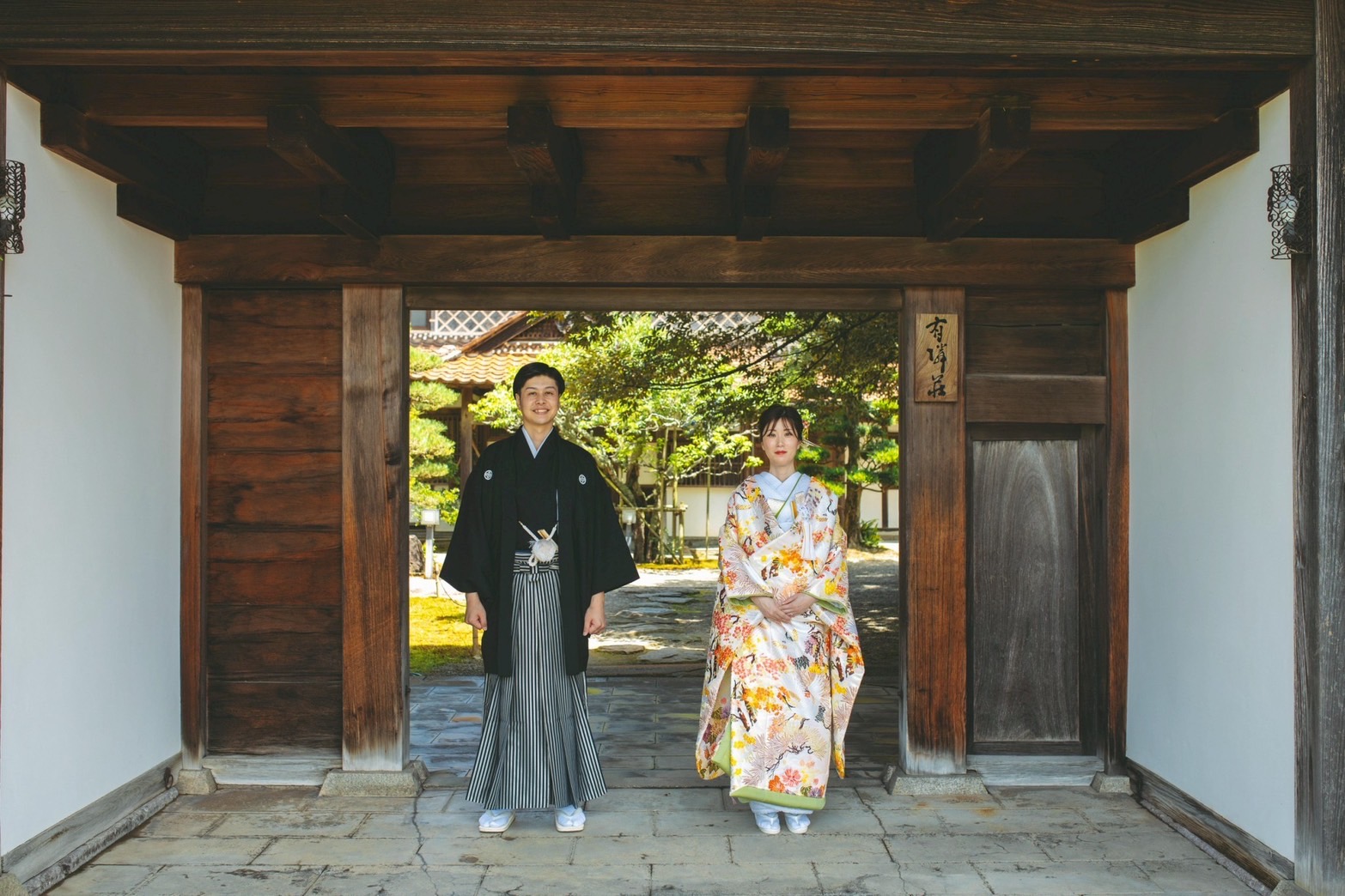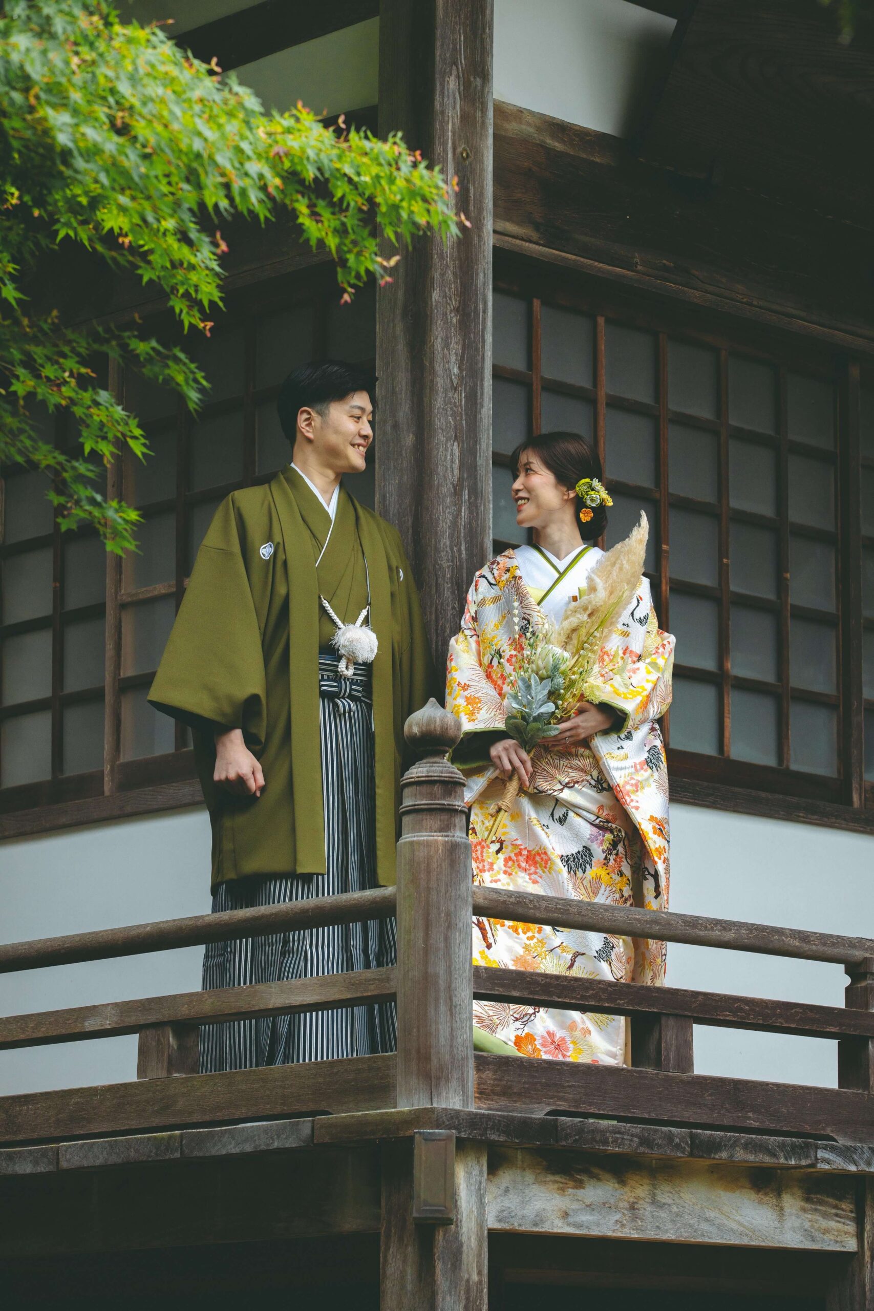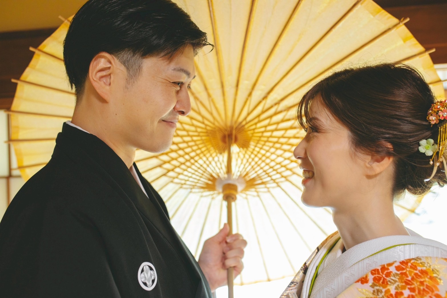 春の桜や新緑を背景に、和装姿を写真に残しませんか?プロのカメラマンが、お二人の自然な笑顔と特別な瞬間を美しく撮影します。