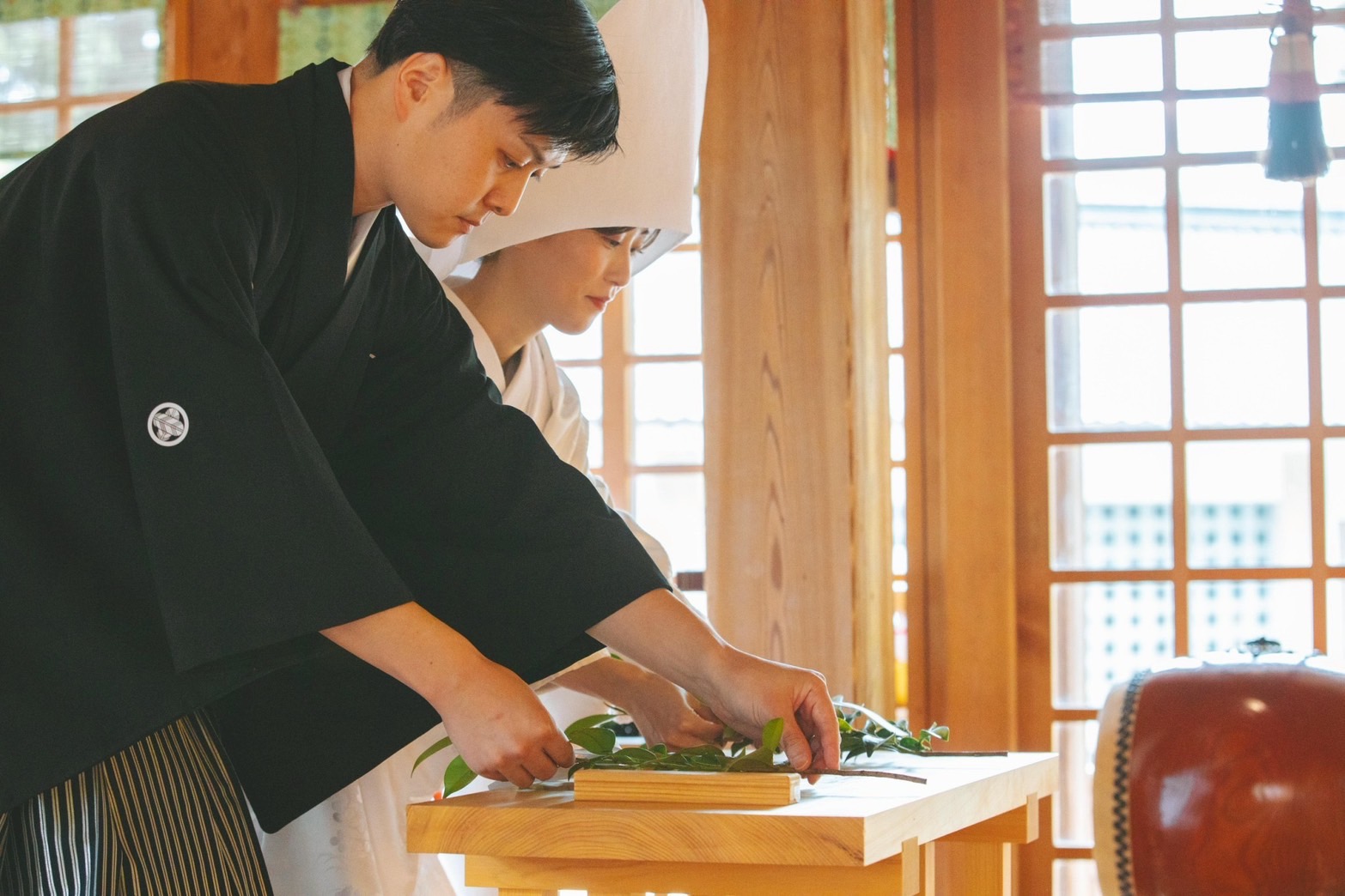 凛とした空気の中、神殿で神様に二人の結婚を報告する形式の婚礼プランで神前式とも表現されます。